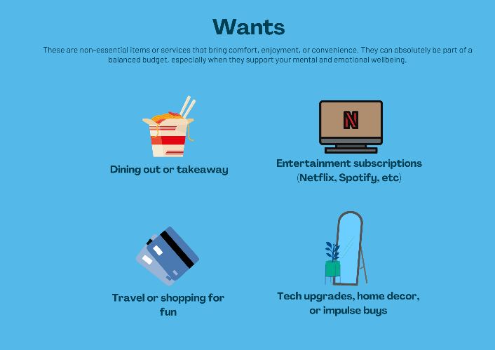 One of the most empowering steps in managing your money is learning to recognise the difference between needs and wants. This isn’t about denying yourself joy or comfort, it’s about making choices that align with your values, goals, and wellbeing.