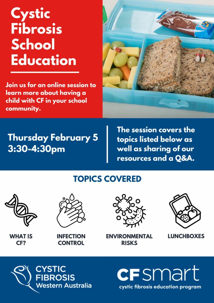 Teachers and school staff are invited to join our free online education session all about cystic fibrosis and how best to manage it in a school environment. It will cover basic CF information, infection control, environmental risks and nutrition needs at school.